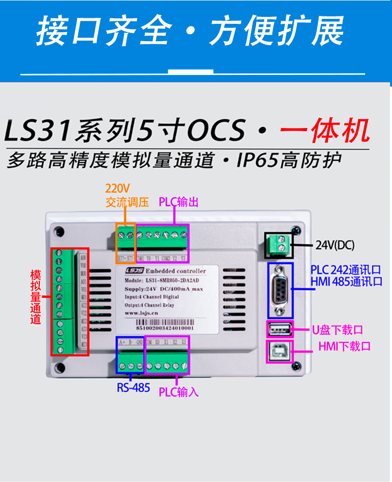 5寸PLC触摸屏HMI一体机可编程控制器模拟量称重万能模拟量输入
