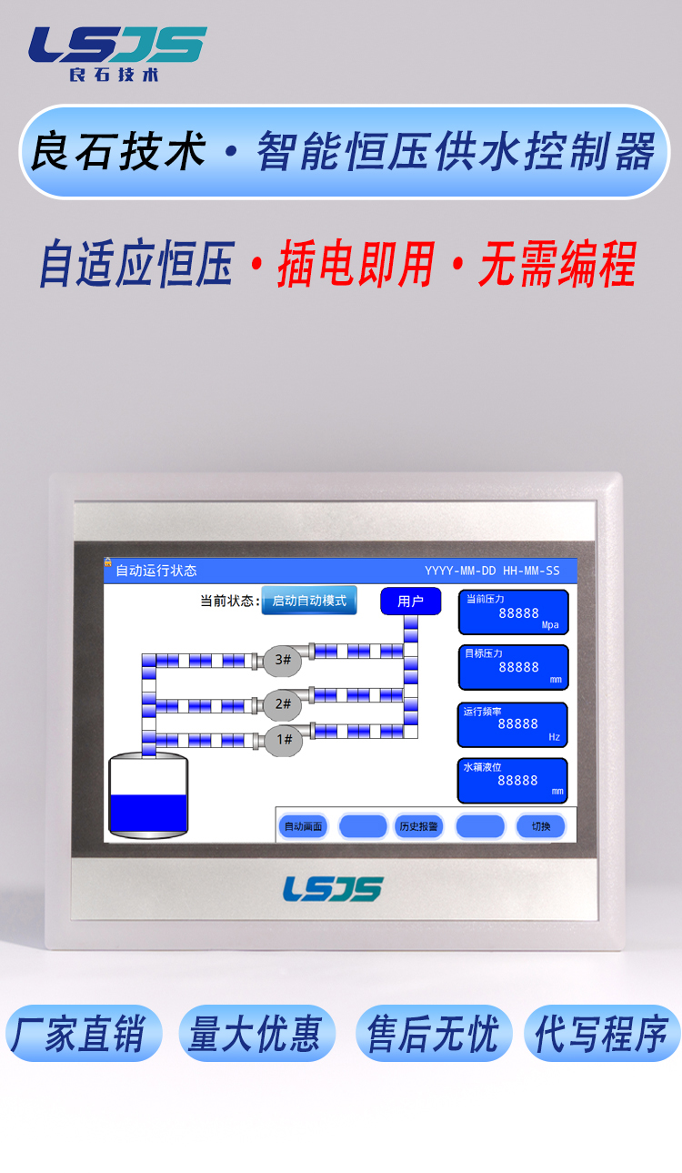 恒压供水控制器PLC可编程触摸屏模拟量通讯变频供水系统解决方案